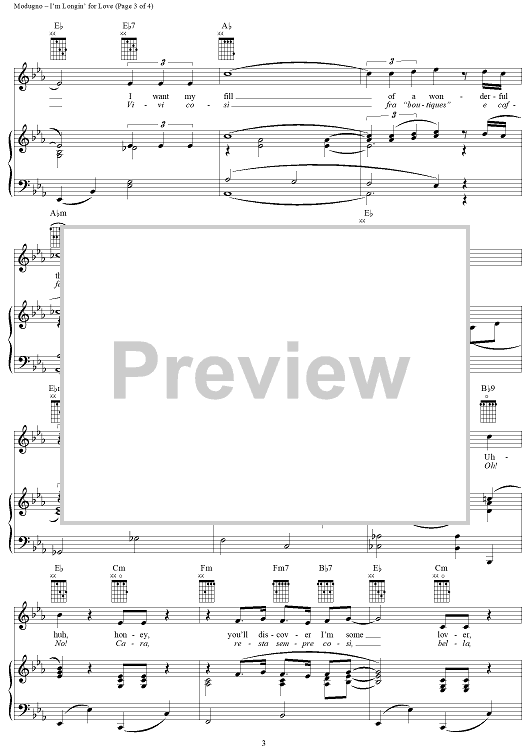 Digital Sheet Music for I'm Longin' for Love by Domenico Modugno, Vincenzo Russo scored for Piano/Vocal/Chords; id:289416