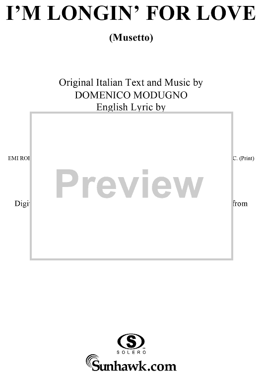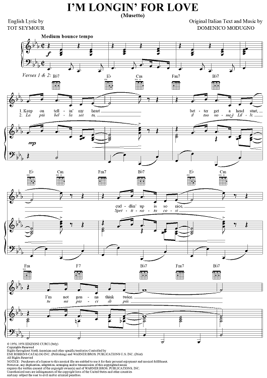 "I'm Longin' for Love" Sheet Music by Domenico Modugno