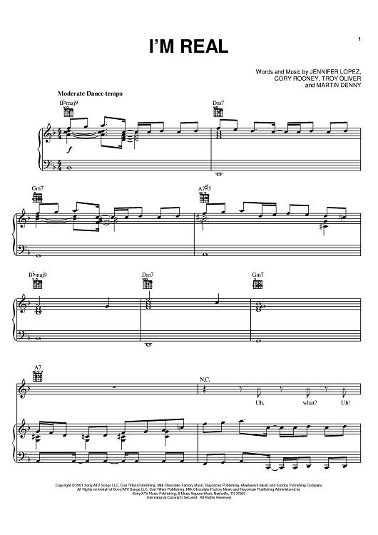 Digital Sheet Music for I'm Real by Jennifer Lopez, Cory Rooney, Martin Denny scored for Piano/Vocal/Chords; id:368544
