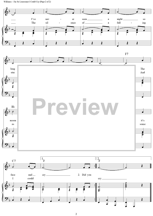 Digital Sheet Music for I'm So Lonesome I Could Cry by Hank Williams scored for Piano/Vocal/Chords; id:360878
