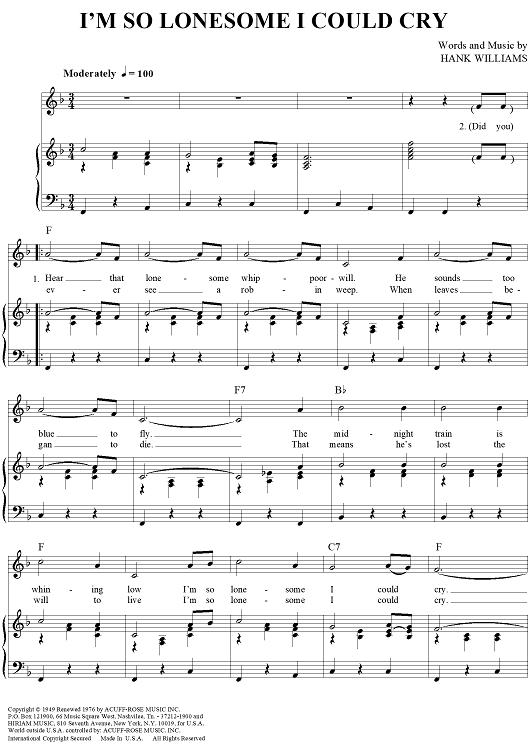 "I'm So Lonesome I Could Cry" Sheet Music by Hank Williams