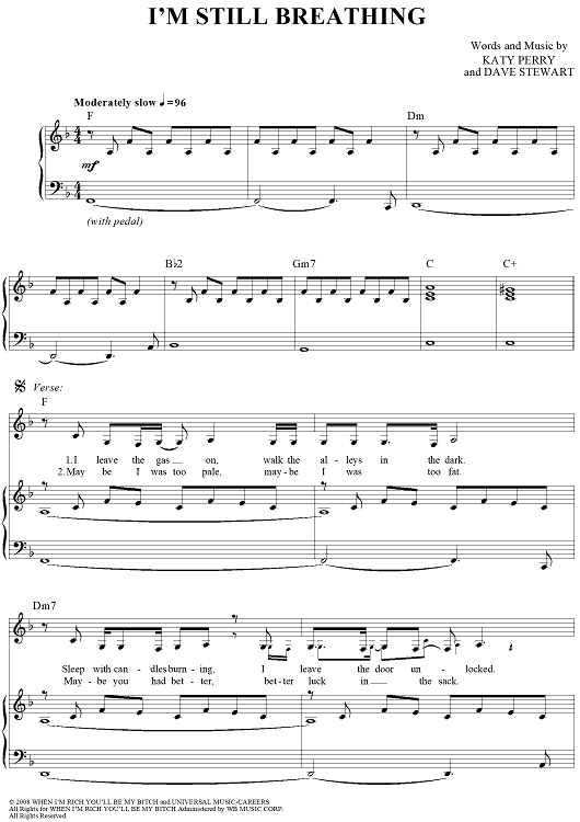 Digital Sheet Music for I'm Still Breathing by Dave Stewart, Katy Perry scored for Piano/Vocal/Chords; id:417457