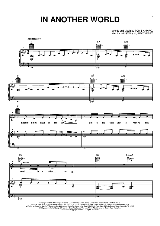 Digital Sheet Music for In Another World by Joe Diffie, Wally Wilson, Tom Shapiro, Jimmy Yeary scored for Piano/Vocal/Chords; id:368865