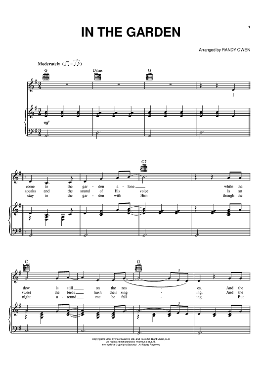 Digital Sheet Music for In The Garden by Randy Owen, Alabama scored for Piano/Vocal/Chords; id:396048