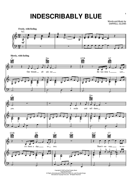 Digital Sheet Music for Indescribably Blue by Elvis Presley, Darrell Glenn scored for Piano/Vocal/Chords; id:388043