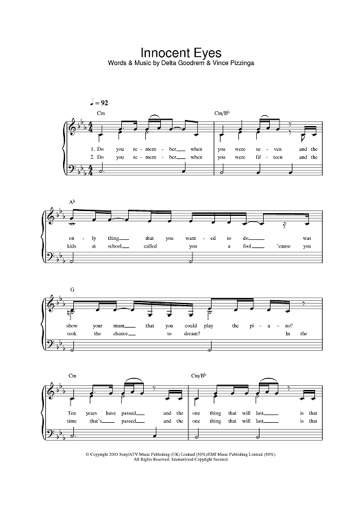 "Innocent Eyes" Sheet Music by Delta Goodrem