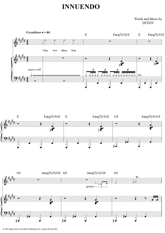 Digital Sheet Music for Innuendo by Queen scored for Piano/Vocal/Chords; id:366824