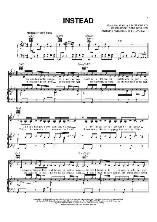 Digital Sheet Music for Instead by Dane Deviller, Sean Hosein, Stacie Orrico, Steven Smith scored for Piano/Vocal/Chords; id:372316