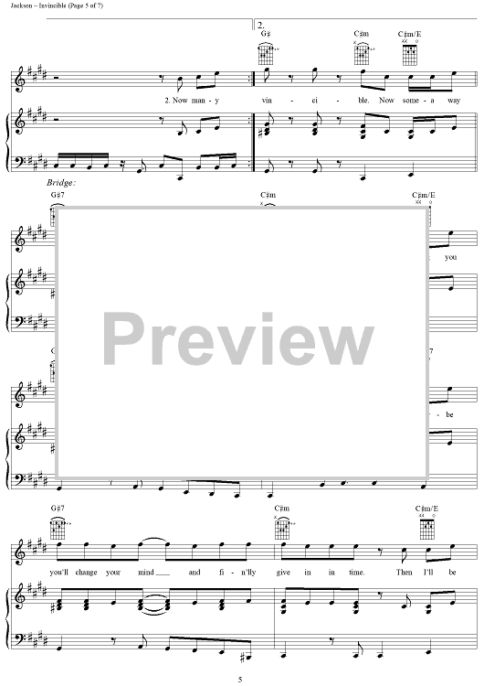 Digital Sheet Music for Invincible by Michael Jackson, Rodney Jerkins, LaShawn Daniels, Fred Jerkins III, Norman Gregg scored for Piano/Vocal/Chords; id:288918