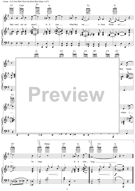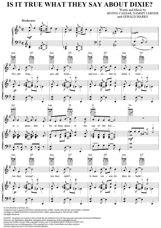 Digital Sheet Music for Is It True What They Say About Dixie? by Irving Caesar, Sammy Lerner, Gerald Marks scored for Piano/Vocal/Chords; id:288020