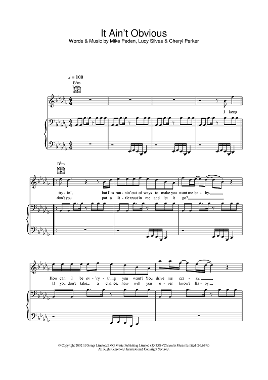 Digital Sheet Music for It Ain't Obvious by Gareth Gates, Cheryl Parker, Michael Peden, Lucie Silvas scored for Piano/Vocal/Chords; id:377742