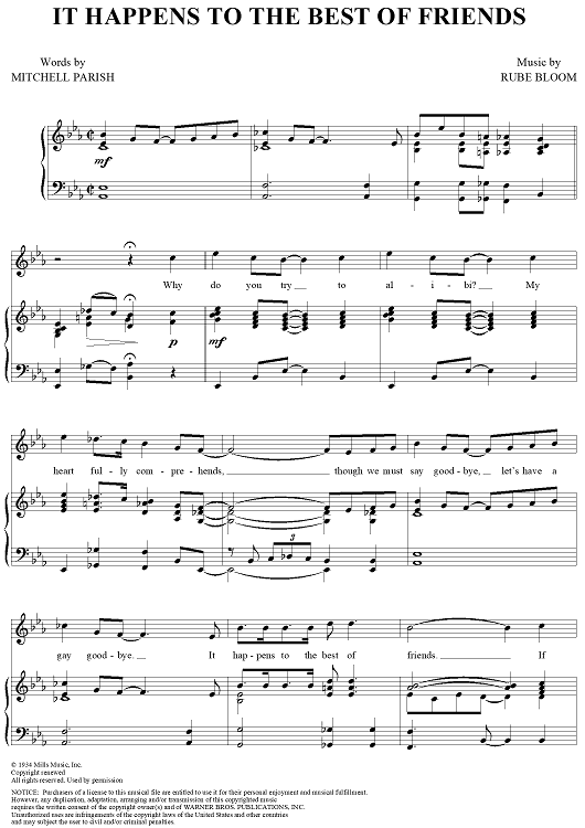 Digital Sheet Music for It Happens to the Best of Friends by Mitchell Parish, Rube Bloom scored for Piano/Vocal; id:275196
