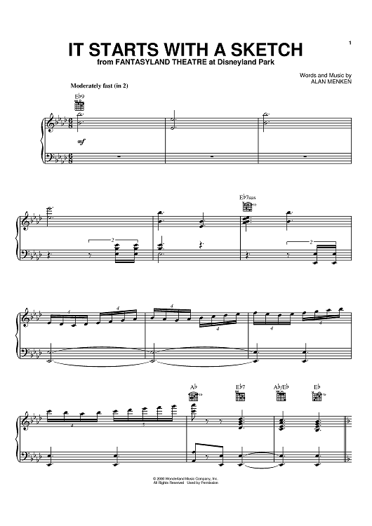 Digital Sheet Music for It Starts With A Sketch by Alan Menken scored for Piano/Vocal/Chords; id:371553