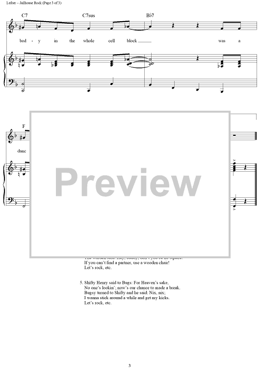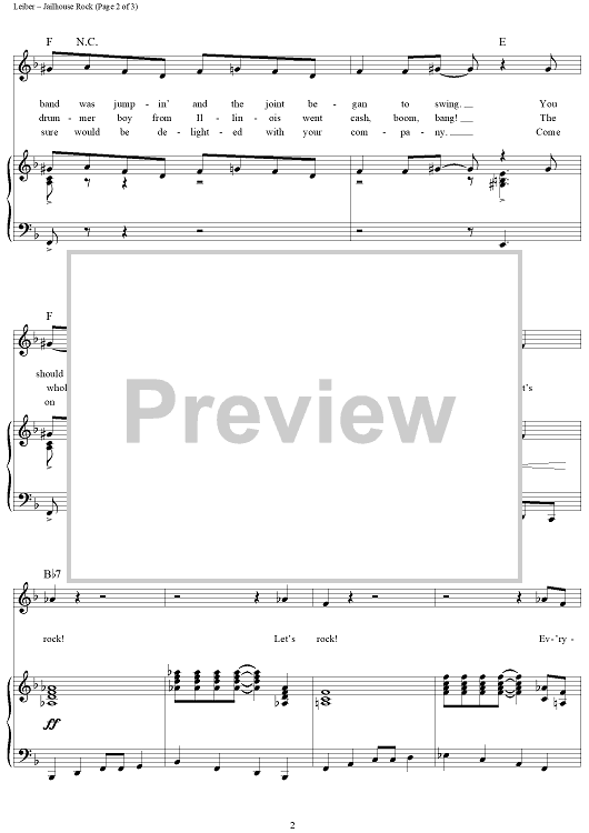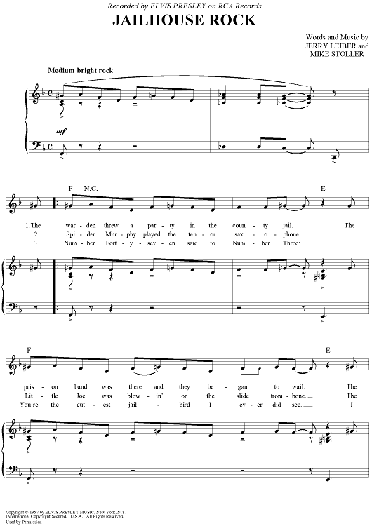 Digital Sheet Music for Jailhouse Rock by Elvis Presley, Jerry Leiber, Mike Stoller scored for Piano/Vocal/Chords; id:362966