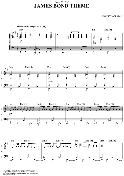 "James Bond Theme" Sheet Music by Monty Norman