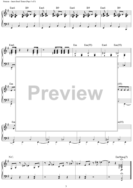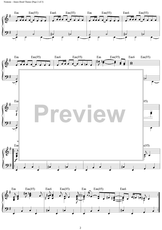 Digital Sheet Music for James Bond Theme by Monty Norman scored for Piano; id:402379