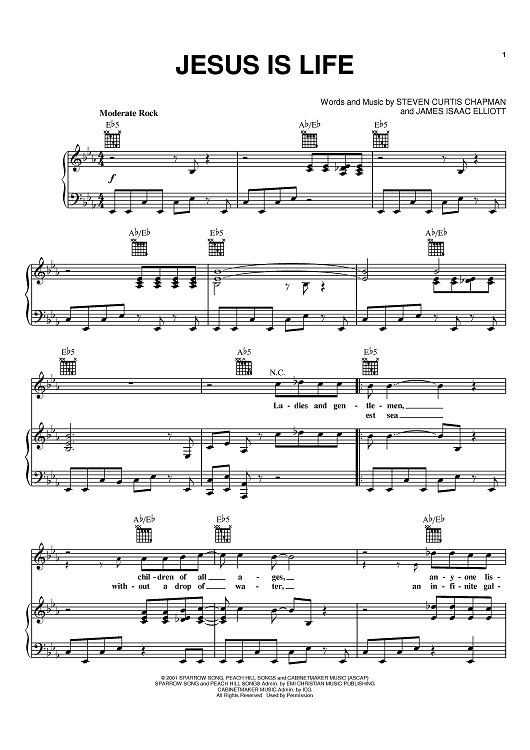 Digital Sheet Music for Jesus Is Life by Steven Curtis Chapman, James Isaac Elliott scored for Piano/Vocal/Chords; id:368873