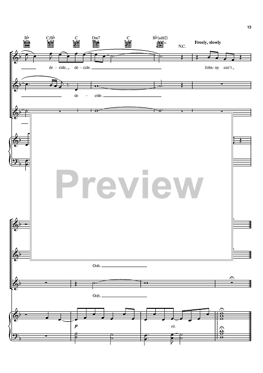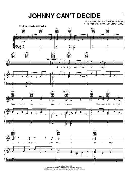 "Johnny Can't Decide" Sheet Music by Jonathan Larson