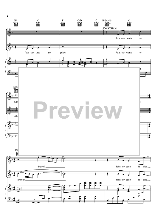 Digital Sheet Music for Johnny Can't Decide by Jonathan Larson scored for Piano/Vocal/Chords; id:374586