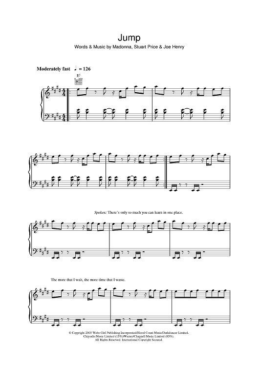 Digital Sheet Music for Jump by Madonna, Joe Henry, Stuart Price scored for Piano/Vocal/Chords; id:396214