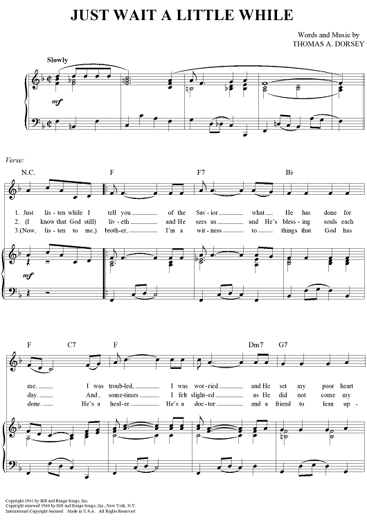 Digital Sheet Music for Just Wait A Little While by Thomas A. Dorsey scored for Piano/Vocal/Chords; id:363251