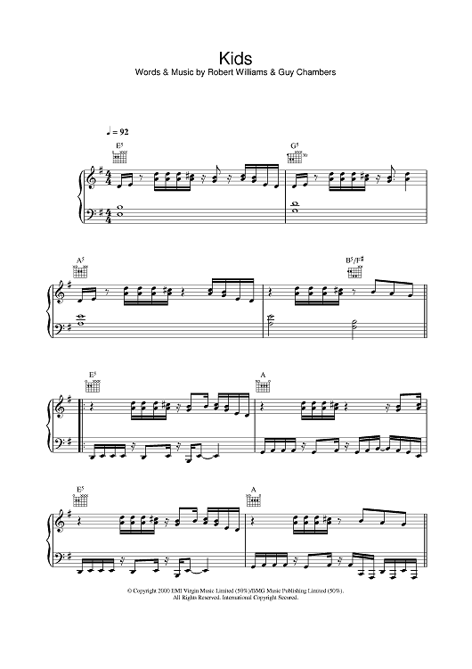 Digital Sheet Music for Kids by Robbie Williams, Kylie Minogue scored for Piano/Vocal/Chords; id:377175