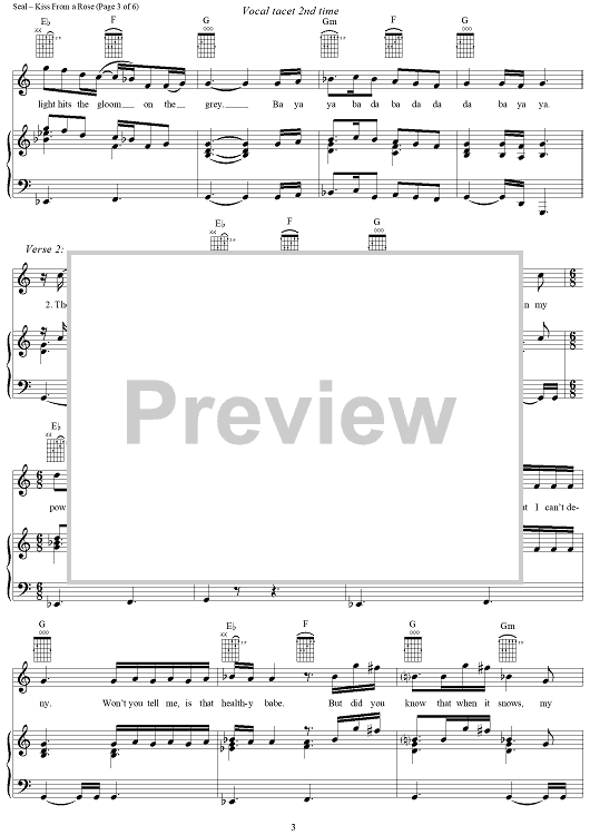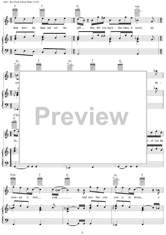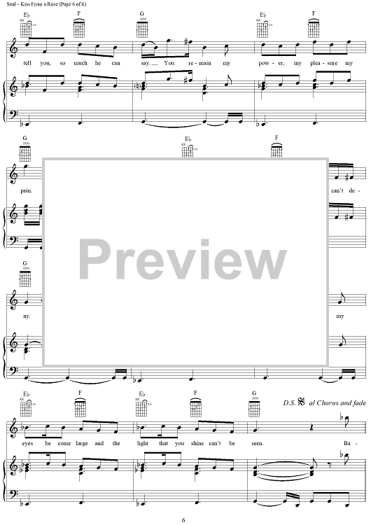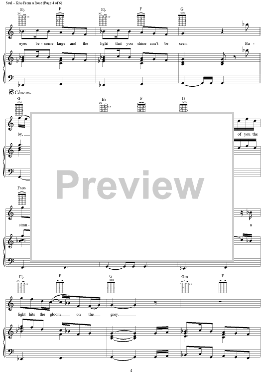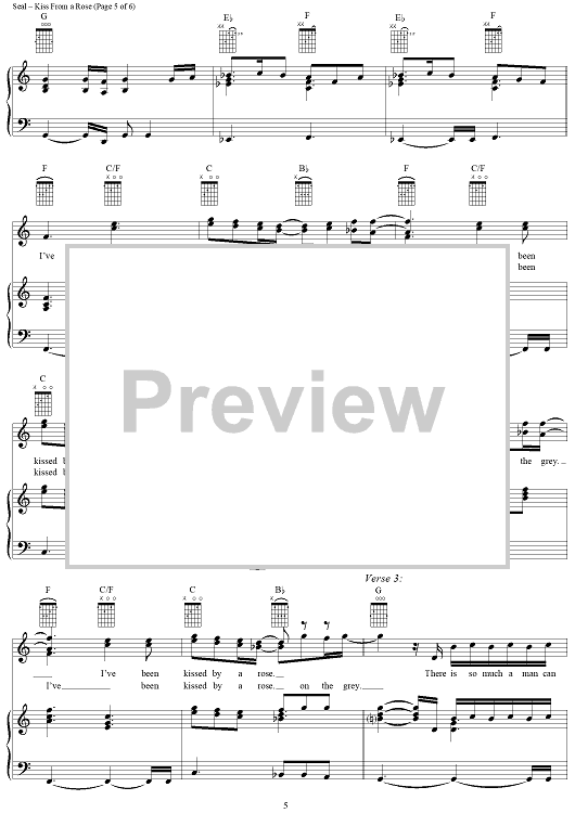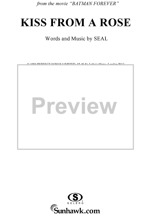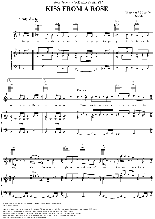 Digital Sheet Music for Kiss From a Rose - from the movie Batman Forever by Seal scored for Piano/Vocal/Chords; id:119882