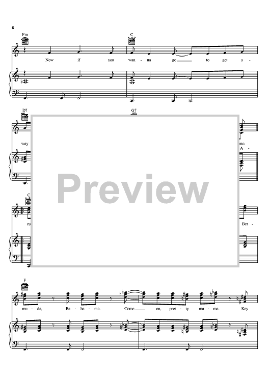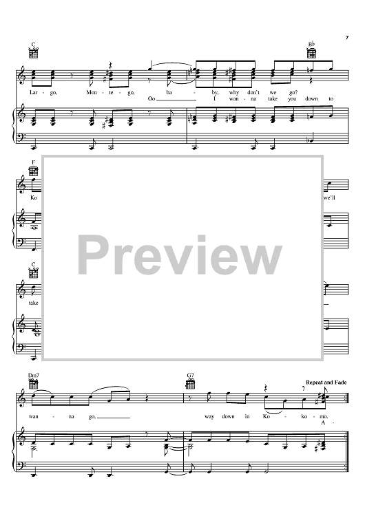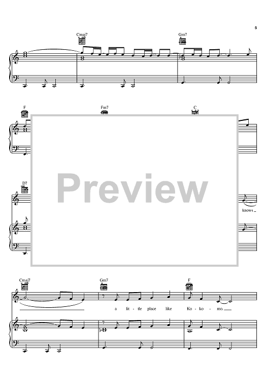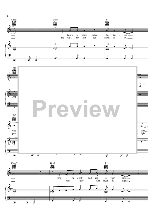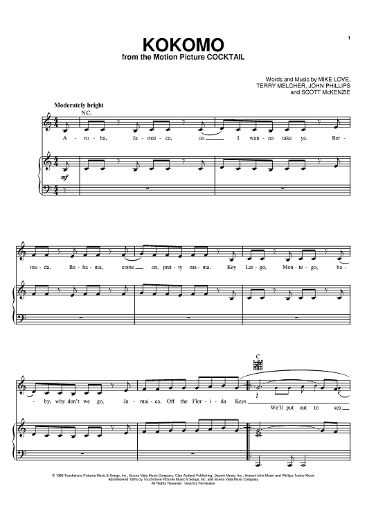 Digital Sheet Music for Kokomo by The Beach Boys, Mike Love, Scott McKenzie, John Phillips scored for Piano/Vocal/Chords; id:367391