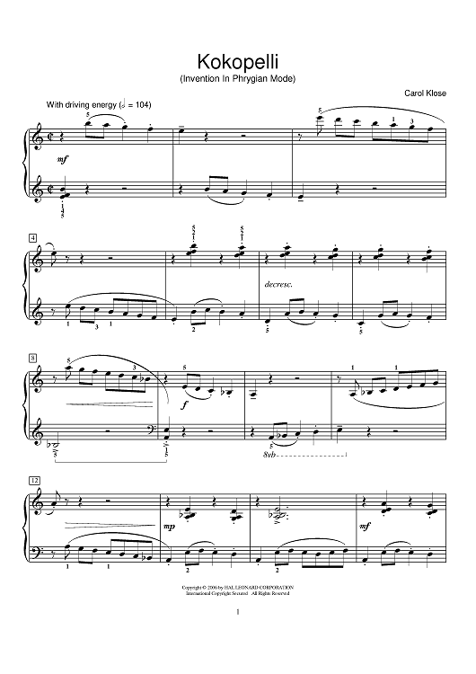 "Kokopelli (Invention In Phrygian Mode)" Sheet Music by Carol Klose