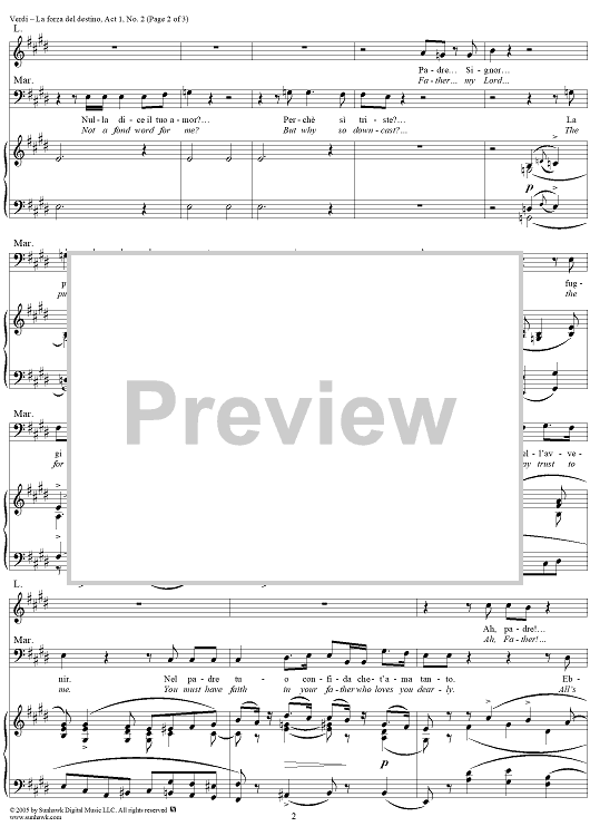Digital Sheet Music for La forza del destino, Act 1, No. 2, Introductory Scene. "Buona notte, mia figlia" - Score by Giuseppe Verdi scored for Piano Score; id:305180