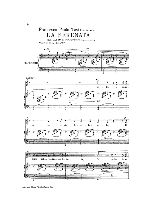Digital Sheet Music for La Serenata by G. A. Cesareo, Francesco Paolo Tosti scored for Piano/Vocal; id:444604