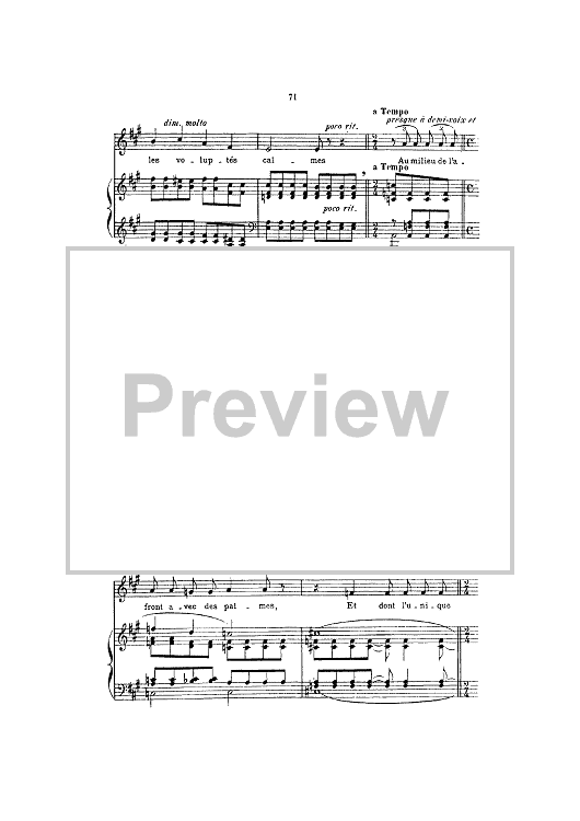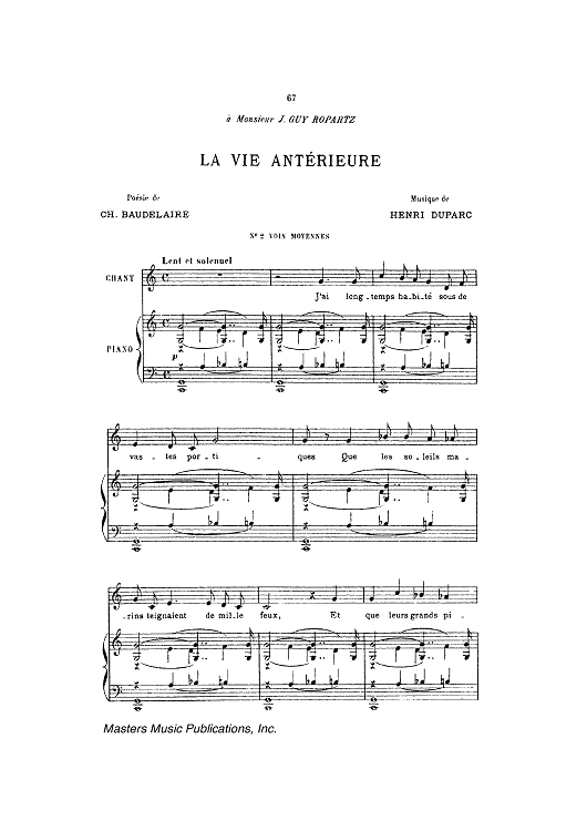 Digital Sheet Music for La Vie antérieure by Charles Baudelaire, Henri Duparc scored for Piano/Vocal; id:444591
