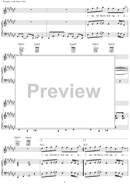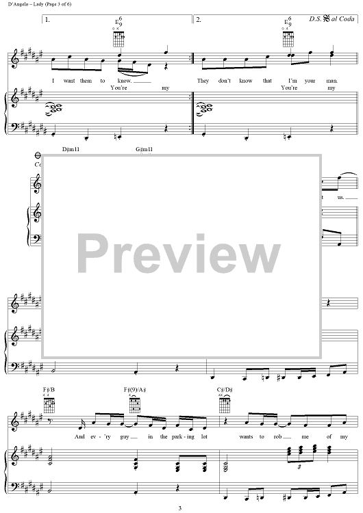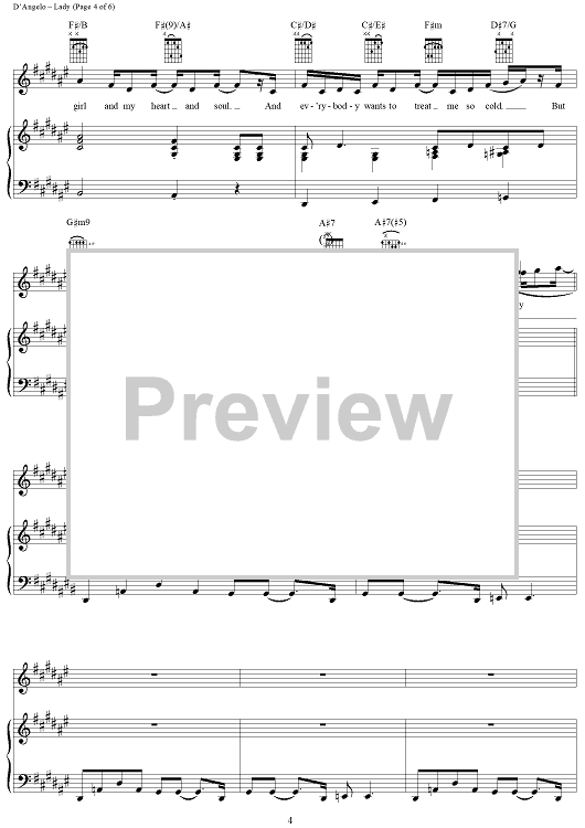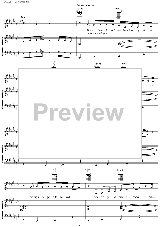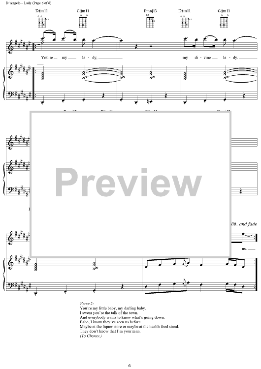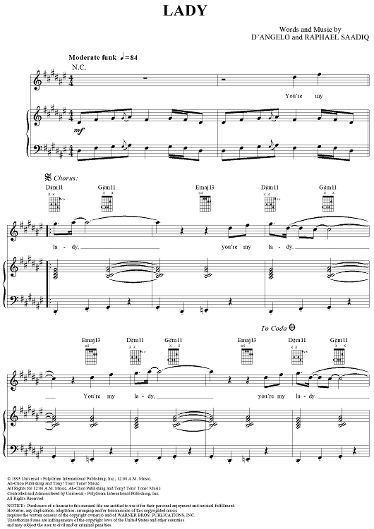 Digital Sheet Music for Lady by Raphael Saadig, D'Angelo scored for Piano/Vocal/Chords; id:289512