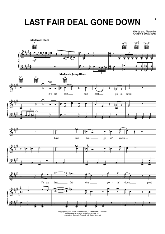 "Last Fair Deal Gone Down" Sheet Music by Robert Johnson