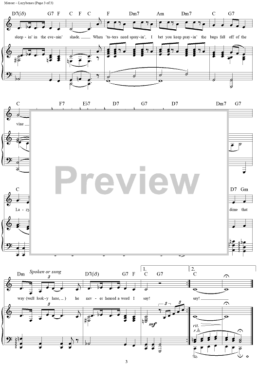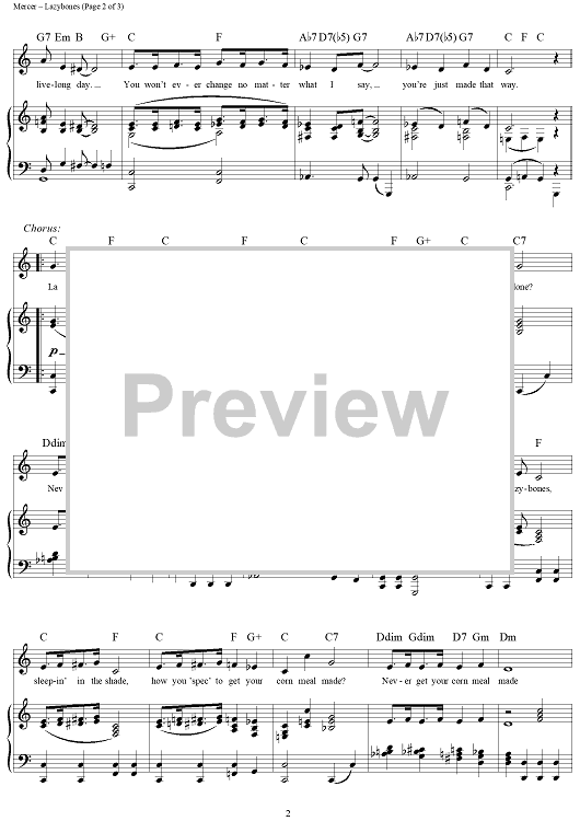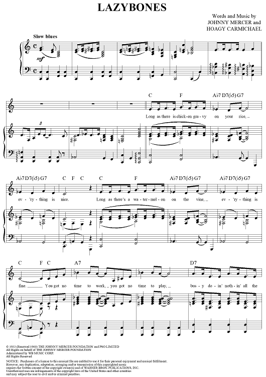 Digital Sheet Music for Lazybones by Johnny Mercer, Hoagy Carmichael scored for Piano/Vocal/Chords; id:288025