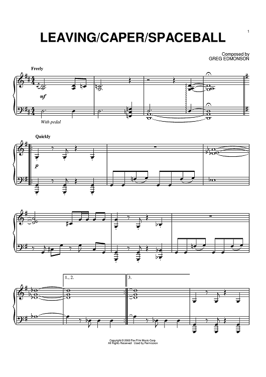 "Leaving/Caper/Spaceball" Sheet Music by Greg Edmonson