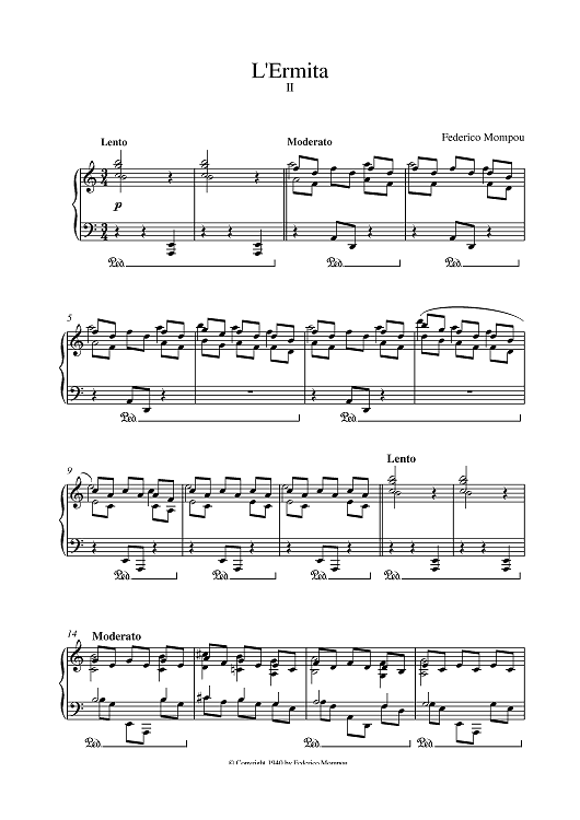 Digital Sheet Music for LErmita by Federico Mompou scored for Piano; id:382472