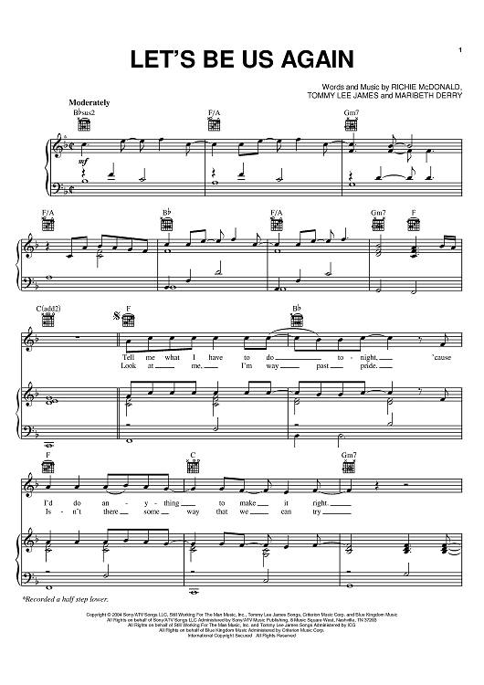 Digital Sheet Music for Let's Be Us Again by Lonestar, Maribeth Derry, Richie McDonald, Tommy Lee James scored for Piano/Vocal/Chords; id:374125
