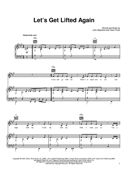 Digital Sheet Music for Let's Get Lifted Again by John Legend, Dave Tozer scored for Piano/Vocal/Chords; id:384082
