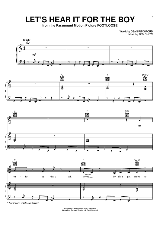 Digital Sheet Music for Let's Hear It For The Boy by Dean Pitchford, Deniece Williams, Tom Snow scored for Piano/Vocal/Chords; id:368729