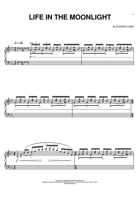 Digital Sheet Music for Life In The Moonlight by Suzanne Ciani scored for Piano; id:396032