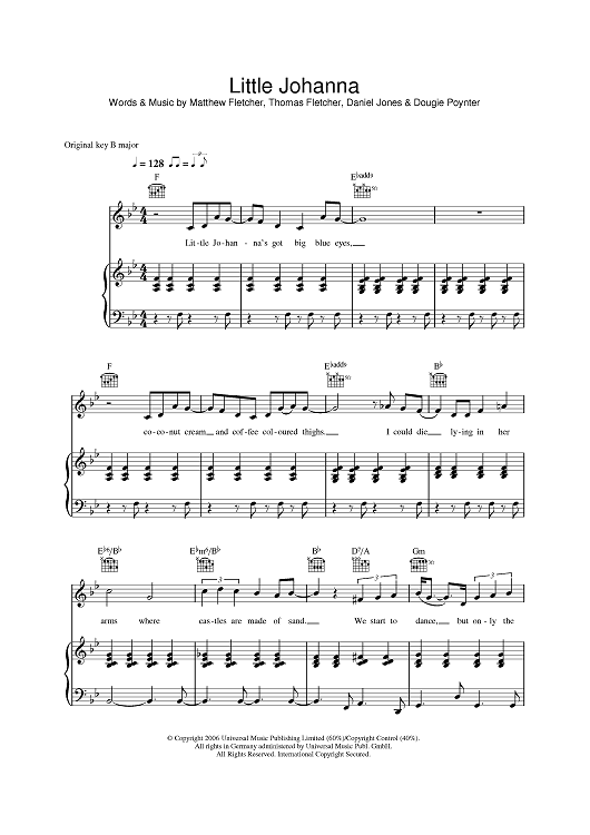 Digital Sheet Music for Little Joanna by Daniel Jones, Tom Fletcher, McFly, Matthew Fletcher, Dougie Poynter scored for Piano/Vocal/Chords; id:395725