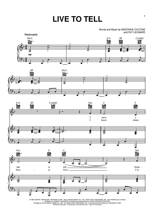 Digital Sheet Music for Live To Tell by Pat Leonard, Madonna scored for Piano/Vocal/Chords; id:395424