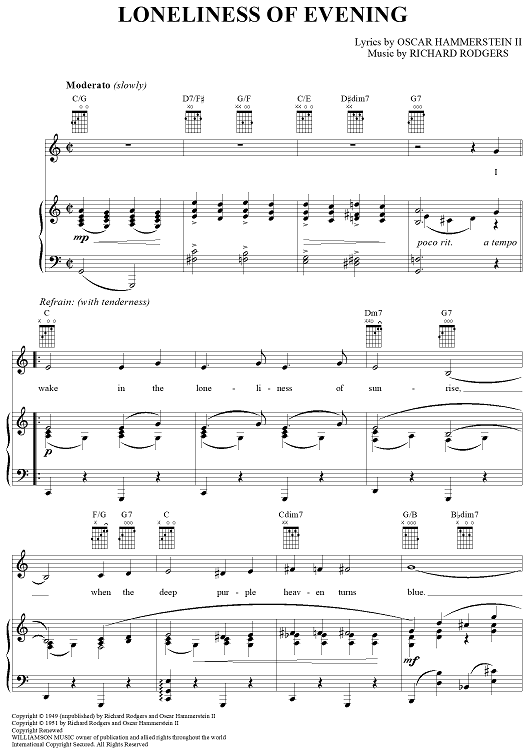 Digital Sheet Music for Loneliness of Evening by Richard Rodgers, Oscar Hammerstein II scored for Piano/Vocal/Chords; id:381551
