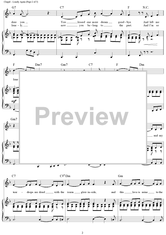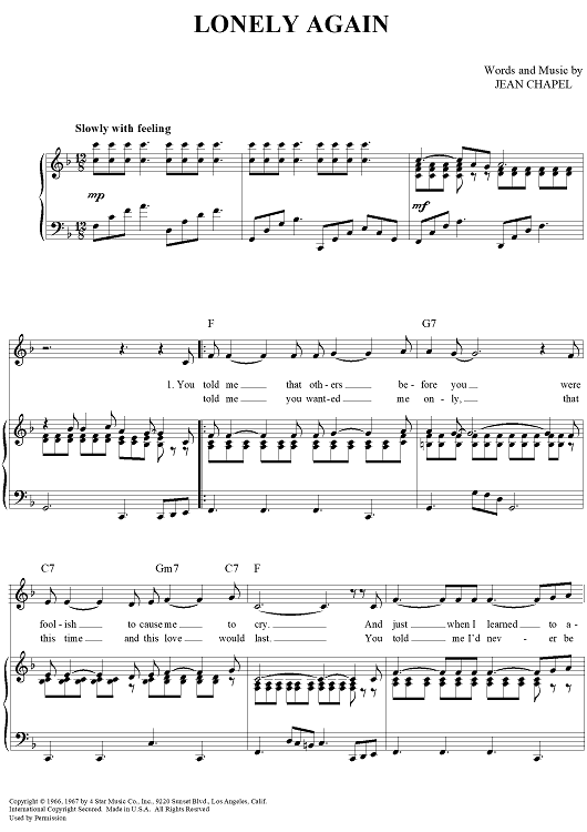 Digital Sheet Music for Lonely Again by Eddy Arnold, Jean Chapel scored for Piano/Vocal/Chords; id:362859