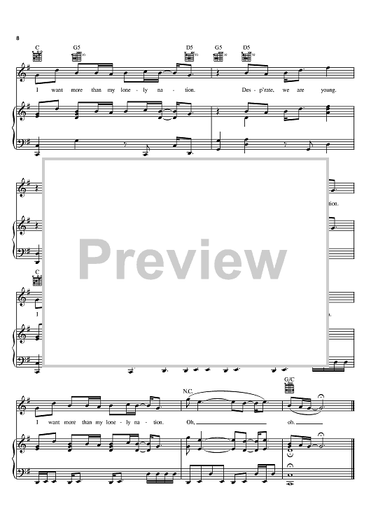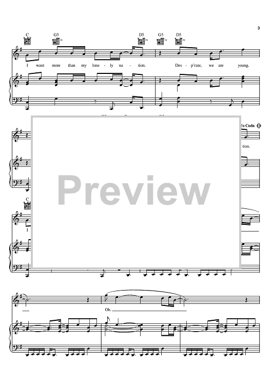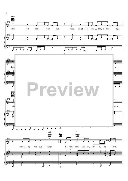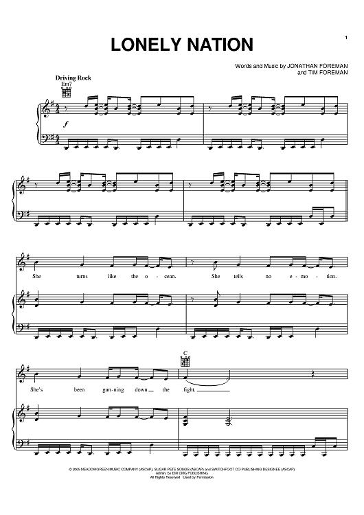 Digital Sheet Music for Lonely Nation by Jonathan Mark Foreman, Switchfoot, Tim Foreman scored for Piano/Vocal/Chords; id:387360