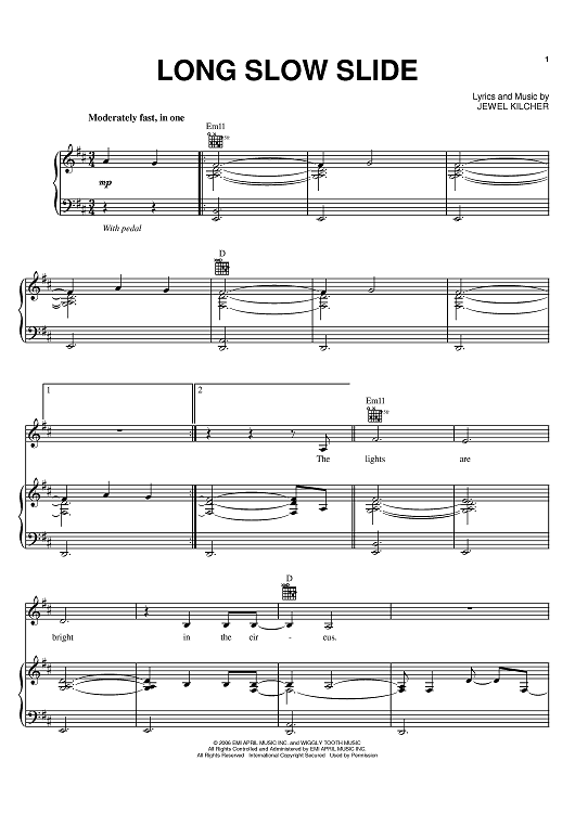 Digital Sheet Music for Long Slow Slide by Jewel scored for Piano/Vocal/Chords; id:393399