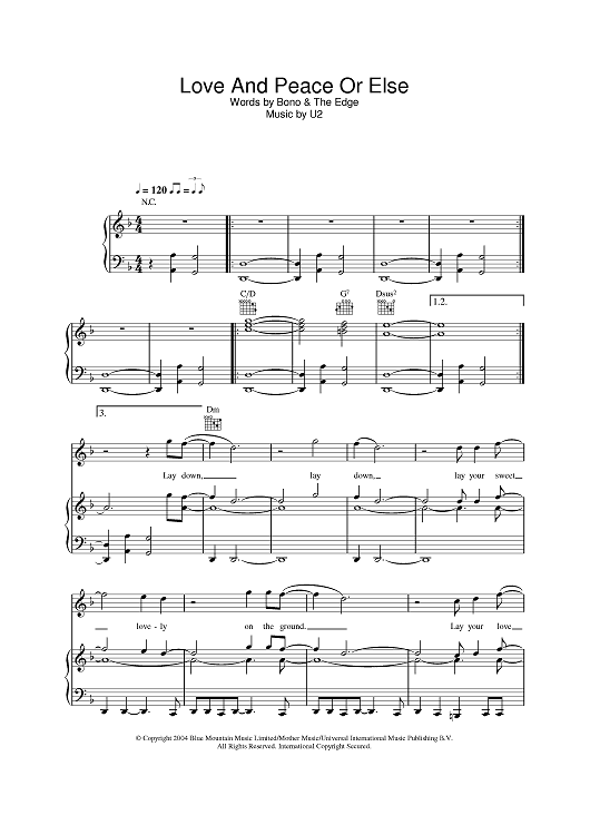Digital Sheet Music for Love And Peace Or Else by U2, Bono, The Edge scored for Piano/Vocal/Chords; id:381721