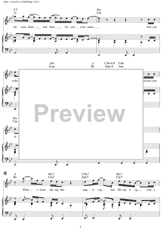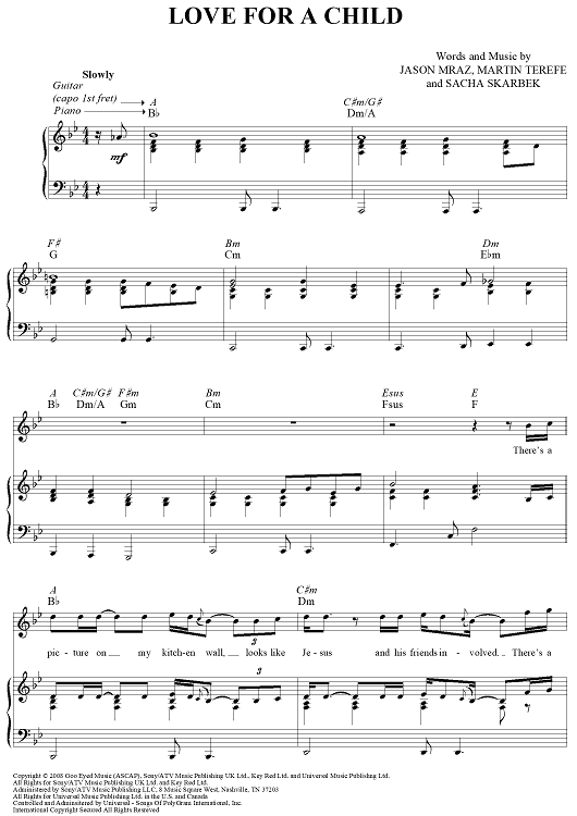 Digital Sheet Music for Love For a Child by Sacha Skarbek, Martin Terefe, Jason Mraz scored for Piano/Vocal/Chords; id:447368