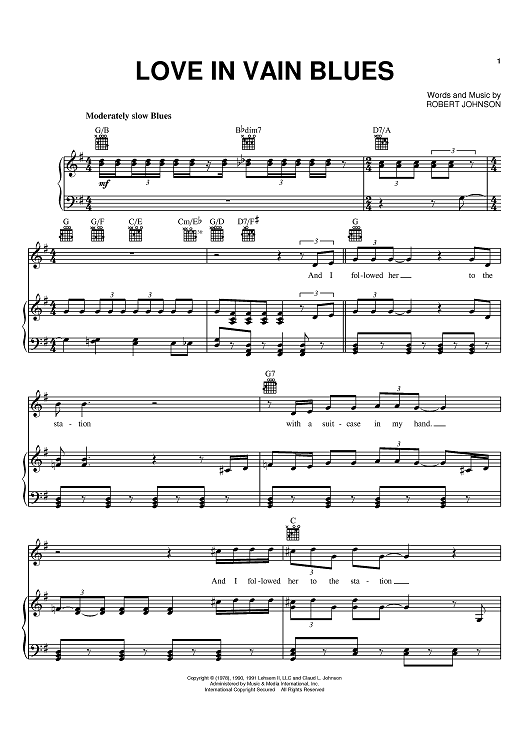 Digital Sheet Music for Love In Vain Blues by Robert Johnson scored for Piano/Vocal/Chords; id:372329